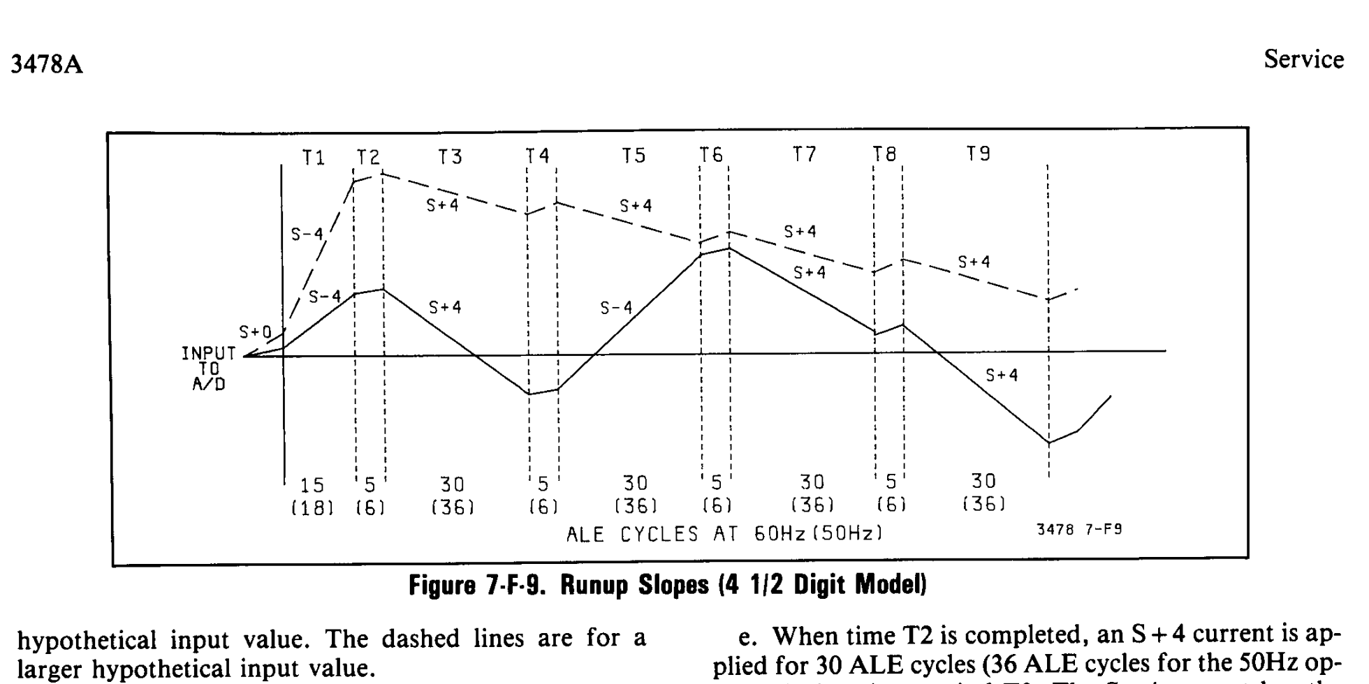 并且,由于此时$V_{in}$已经断开,我们可以使用较少的电阻并使用叠加定理创造出较多的斜率。HP3478A使用三个电阻生成了九个斜率。
