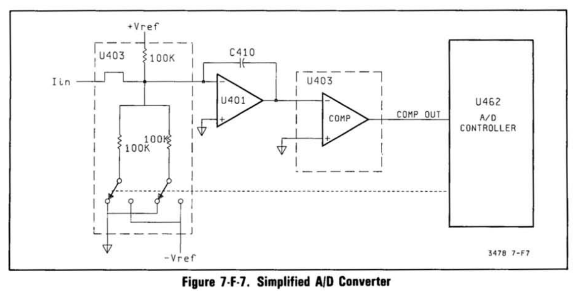 据此,HP 积分ADC II的雏形已经完成,3456A、3457A、3458A、3468A、3478A均使用第二代HP积分ADC的不同变种,其中每款的具体实现细节我们将不再赘述。随着后续半导体技术的发展,34401A使用ADC取代了RunDown阶段,并持续执行RunUp并测量周期前后的积分器电压,实现了更高速的,几乎无停顿的采样。34410A更是使用ADC直接取代了比较器并使用更新的MOSFET开关以大幅提升RunUp分辨率,更新的ADC同样提升了RunDown精度,籍以实现比34401A高一个数量级的采样速度。至于更新的3446x系列,作者暂时没摸到真机,故不做讨论。
