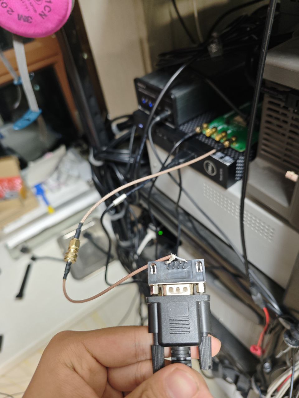 展示一下拙劣的 PPS 到 RS-232 DCD 转接线,这虽然严重不符合电平标准,但是却工作良好:(所以我最后并没有使用 ttyS0 作为 GPS NEMA 报文传输链路,而是 Ublox USB CDC-ACM)