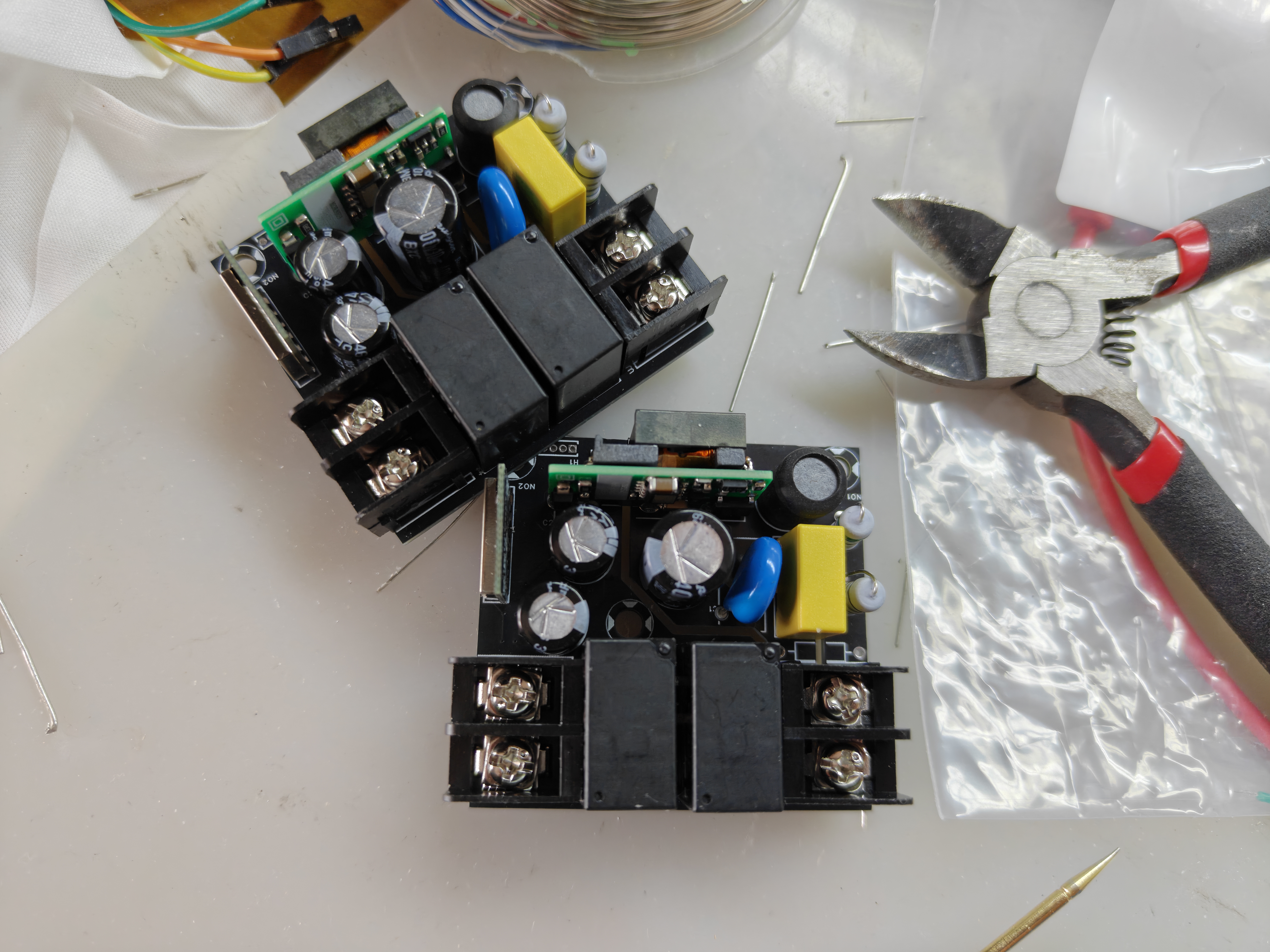 选用 ESP8685-WROOM-3(即 ESP32-C3),是体积最小的立贴 ESP32 模组。供电部分采用 LS05-13B05R3 反激模块。最终关断功耗为 0.8W,开启功耗为 1.9W。值得注意的是,为了保证和传统开关的互操作性,在配置中将继电器配置为默认开启状态,这使得系统在上电后约 400ms 后接通继电器,但是仍然具有显著的延迟。并且整体电容过大,掉电保持时间过长,使得当模组处于远程关闭状态时快速切换开关不能正常复位并接通亮灯。因此在接下来的版本中,一方面需要削减输出电容量,另一方面也应将继电器控制逻辑默认处于接通状态以最小化上电延迟。(在配置文件中同样启用了蓝牙中继,因为吸顶灯的安装位置的确适合收集蓝牙传感器报文)该电路满足 EN55032 CLASS B 与 IEC/EN61000-4-2 Contact ±6KV / Air ±8KV ESD, IEC/EN61000-4-5 line to line ±2KV。